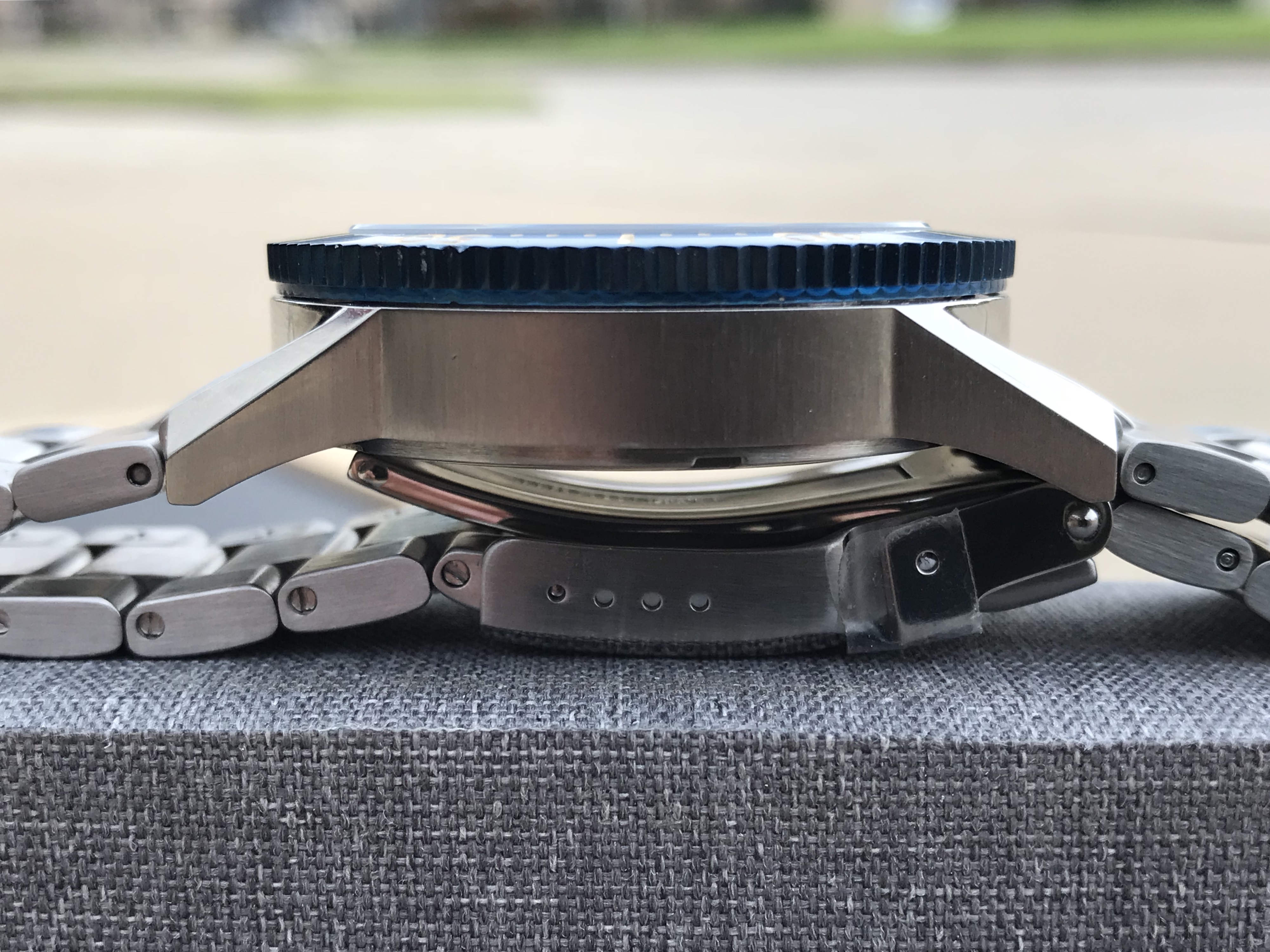 Of course, it too must be equally sexy, as it rendezvous with the Cale’s long, down-turned lugs mentioned above. The vertical brushing found on the outside of the lugs give way to a high-polish chamfer that adds a subtle touch of bling to this world-class diver. While my review pieces were still in prototype form, I found the fit of the bracelet to the case to be exceptionally good.