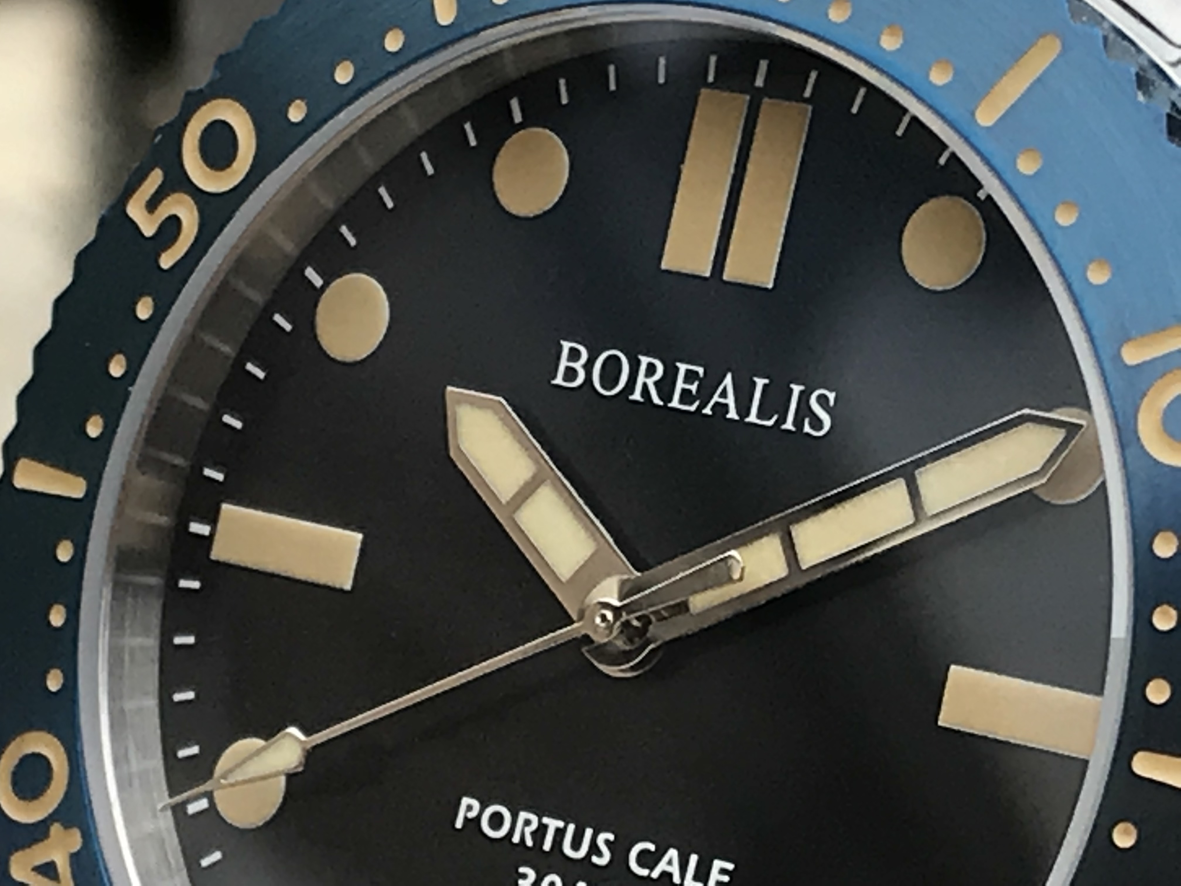 Although Carlos Carvalho, owner of Borealis and its sister company, Prometheus Watch Co., wanted to make note that the bezel action would be improved on all production models, the truth is, I found nothing wrong with the bezel action on either of the three pieces I reviewed. All clicks were strong and the lumed bezel markers stopped exactly where they should.